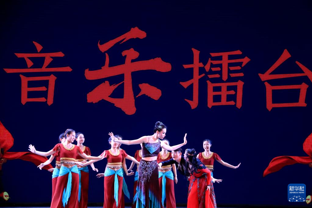7月3日,在西北师范大学敦煌学院实验剧场,舞者与西北师范大学敦煌学院学生共同表演。