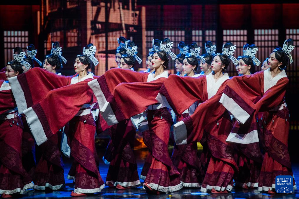 当日,舞剧《五星出东方》在武汉市湖北剧院上演。该剧的构想源于从我国新疆和田尼雅遗址出土的国家一级文物“五星出东方利中国”汉代织锦护臂。