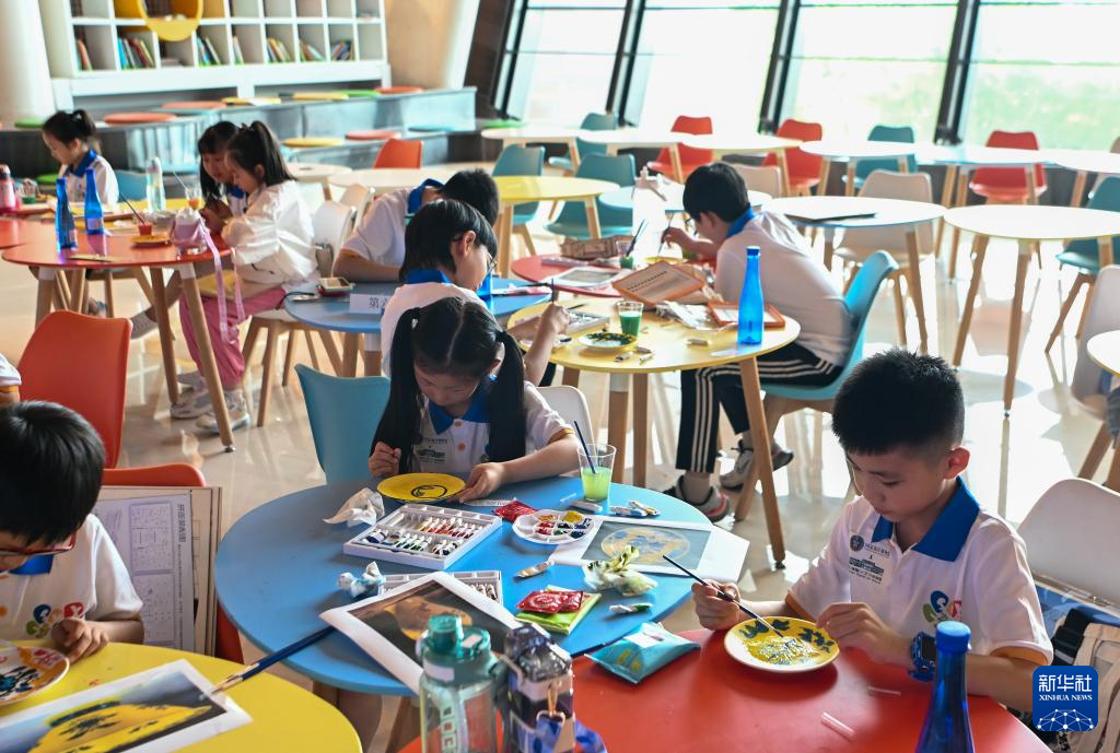 7月29日,在国家海洋博物馆,学生们在体验绘制外销瓷。