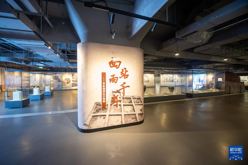 这是8月9日在杭州西站拍摄的“西站两千年——李家塘遗址文物展”展区。