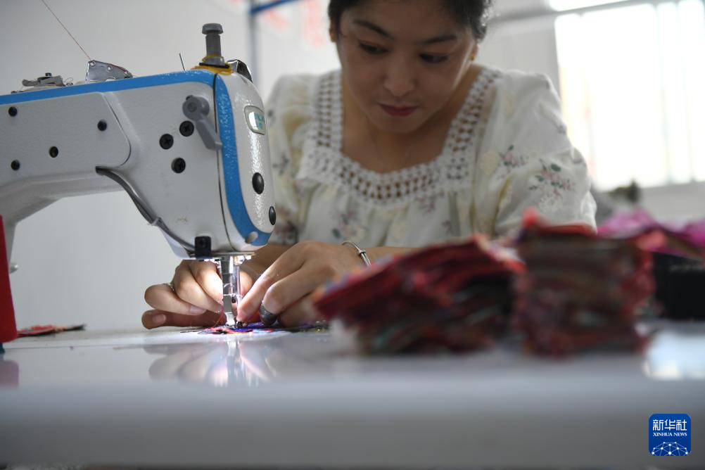 9月8日,在宝鸡西秦刺绣文化产业园,千阳绣娘在刺绣。陕西千阳县是国家级非物质文化遗产“西秦刺绣”的重要发祥地和传承地。近年来,千阳县将西秦刺绣作为助农增收的重要产业,推动非遗项目产业化发展,助力乡村振兴。