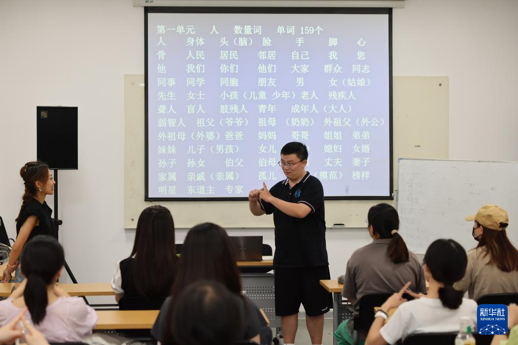 9月11日,在上海市群众艺术馆,学员在手语课程后展示学习成果。