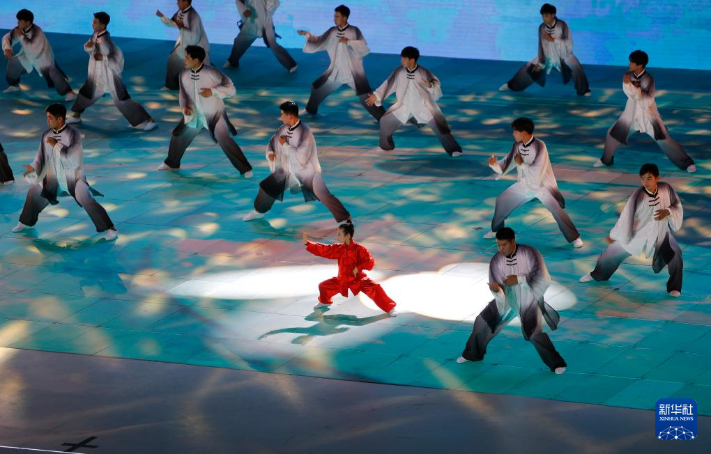 9月16日拍摄的第十一届中国·焦作国际太极拳大赛暨2023云台山旅游节开幕式文艺演出现场。