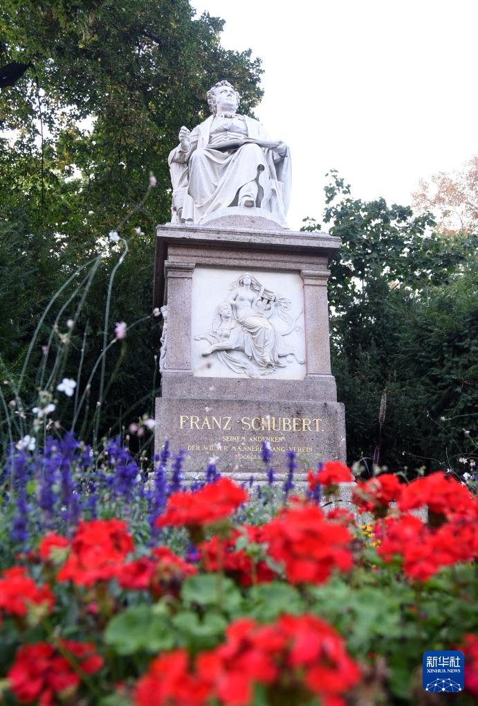 这是10月2日在奥地利维也纳拍摄的舒伯特纪念碑。