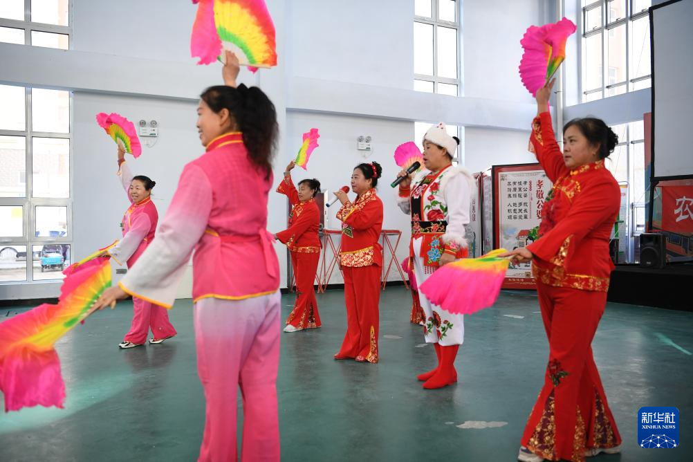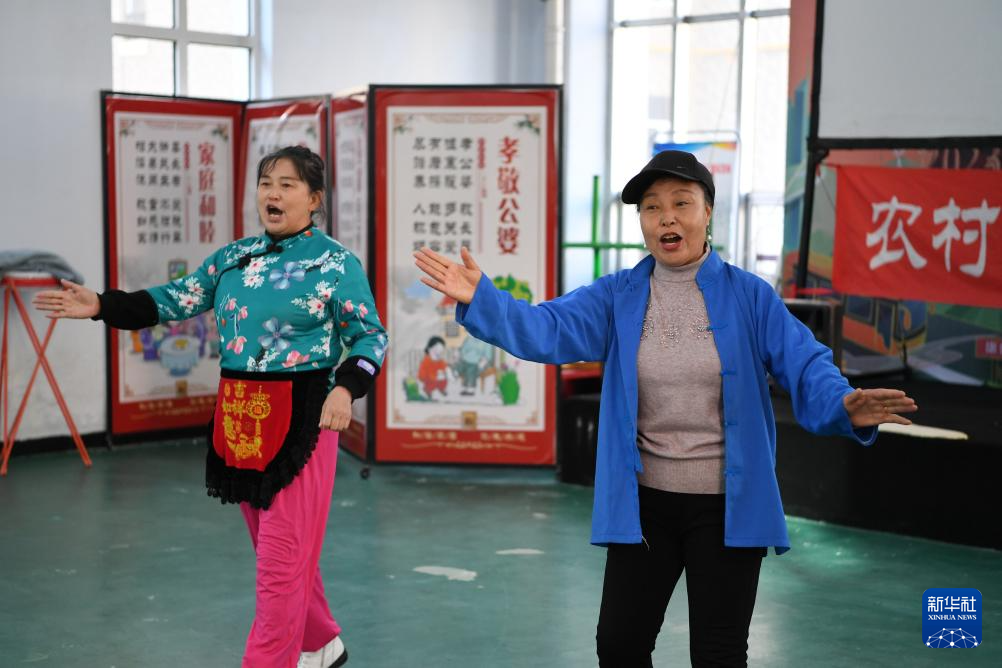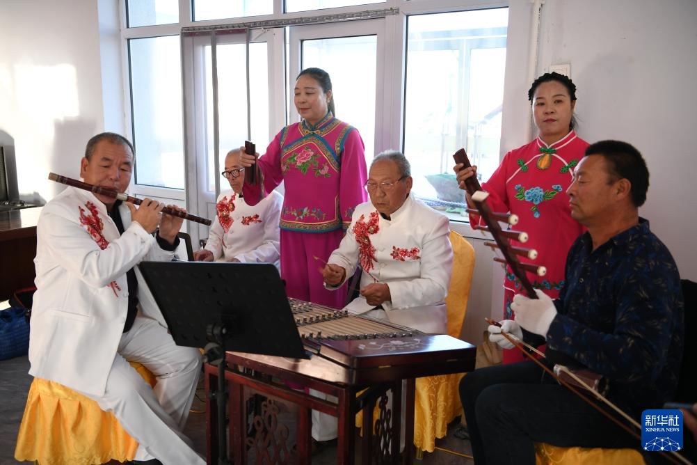 10月13日,河北省康保县怡安康城社区居民在排练康保二人台曲目。