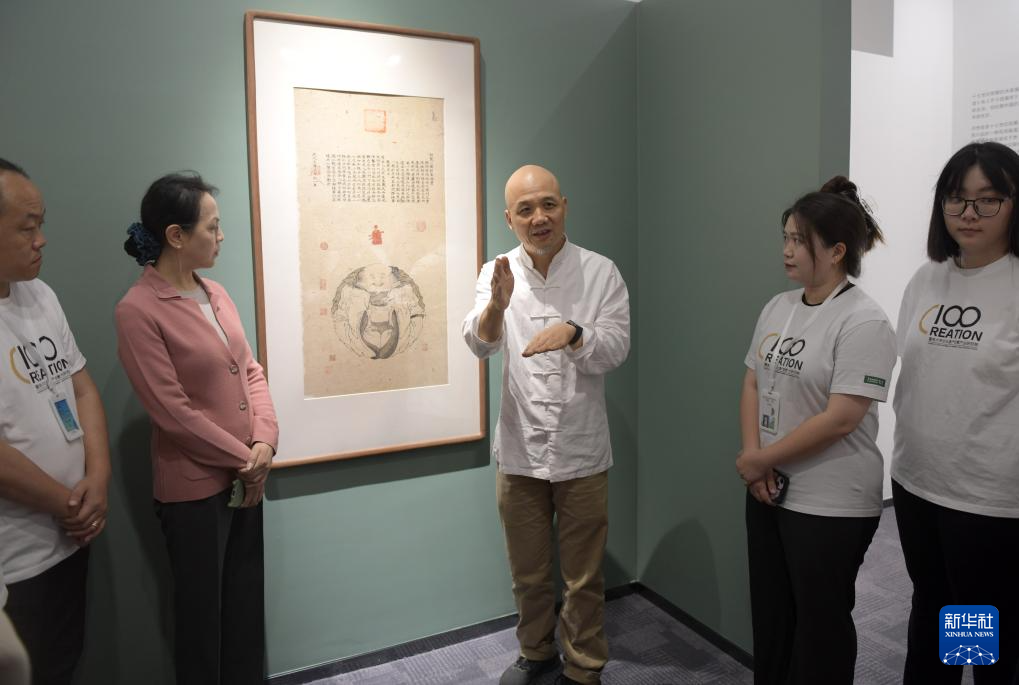 当日,十竹斋木版水印艺术作品展在暨南大学广州石牌校区举行。国家非遗项目木版水印技艺代表性传承人魏立中在展览现场为学生导赏、授课,并指导学生体验木版水印手作的乐趣。