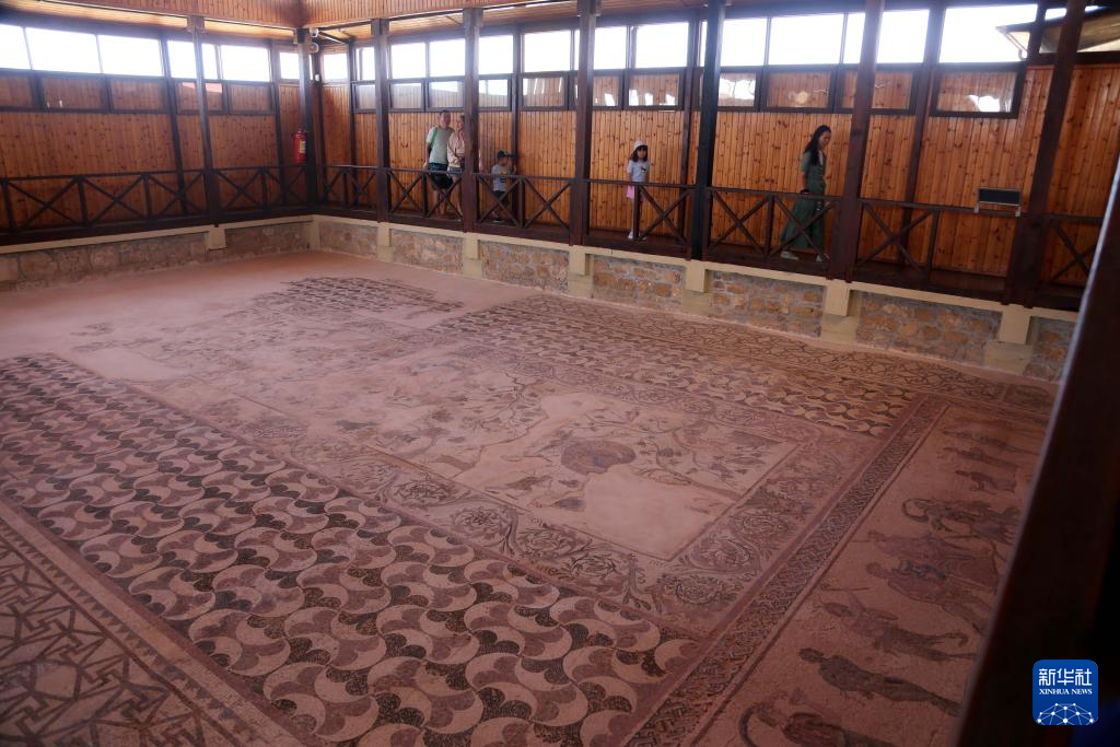 这是11月8日在塞浦路斯帕福斯考古公园内拍摄的马赛克地板。