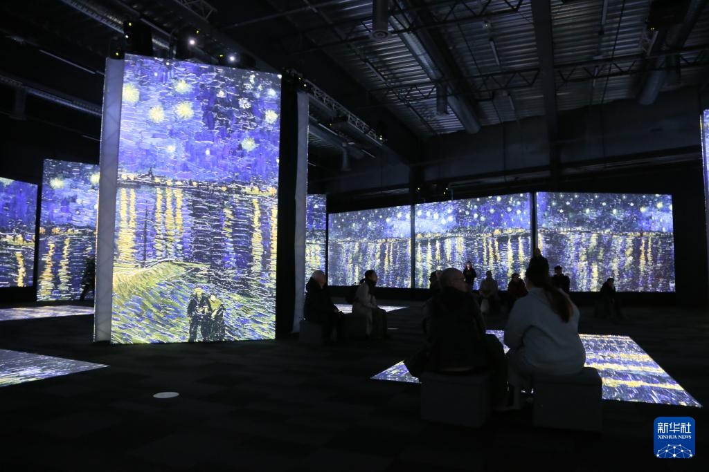 11月17日,在挪威维肯郡的利勒斯特伦,观众观看梵高光影艺术展。