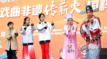 11月25日,工作人员在活动上为孩子们表演互动节目“真假美猴王”。