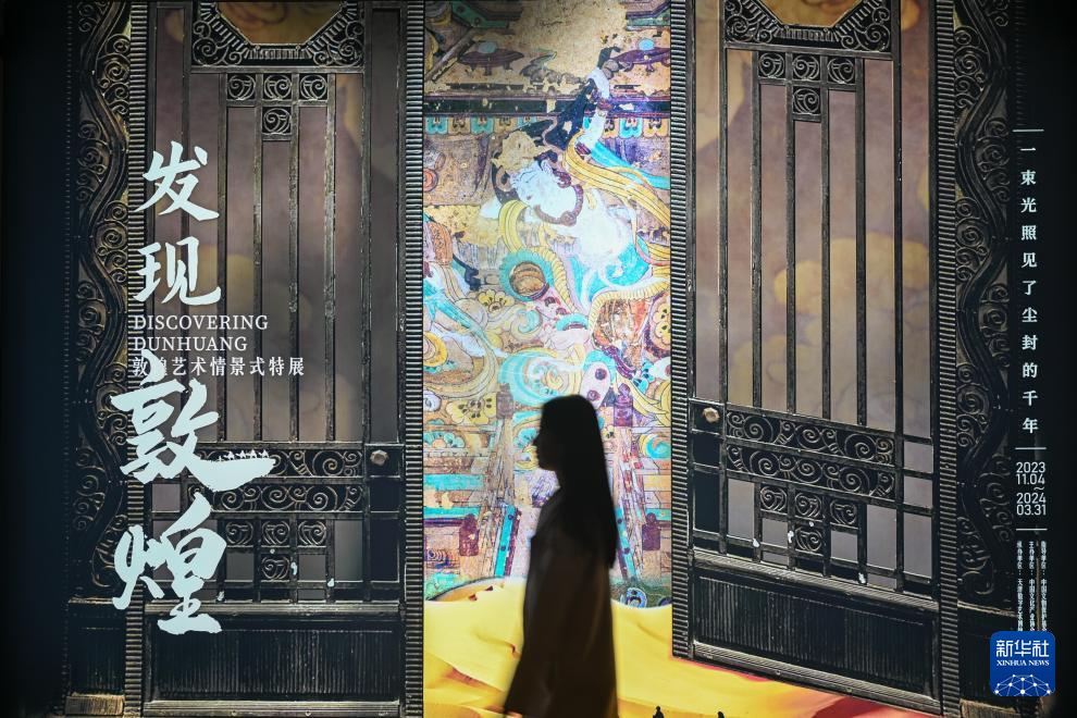 当日,“发现敦煌——敦煌艺术情景式特展”在天津数字艺术博物馆举行媒体开放日活动。特展按时间顺序分为“发现敦煌”“守护敦煌”“传承敦煌”三个部分,以数字艺术再现千年敦煌之美。展览将持续至2024年3月。