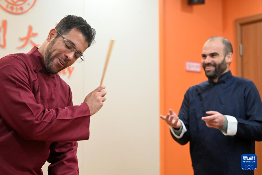 一把折扇、两袭长衫,辅以略显夸张的肢体动作和表情……在南开大学外国语学院的教室里,两位“老外”用西班牙语说起了相声,并依托学校平台对外传播。