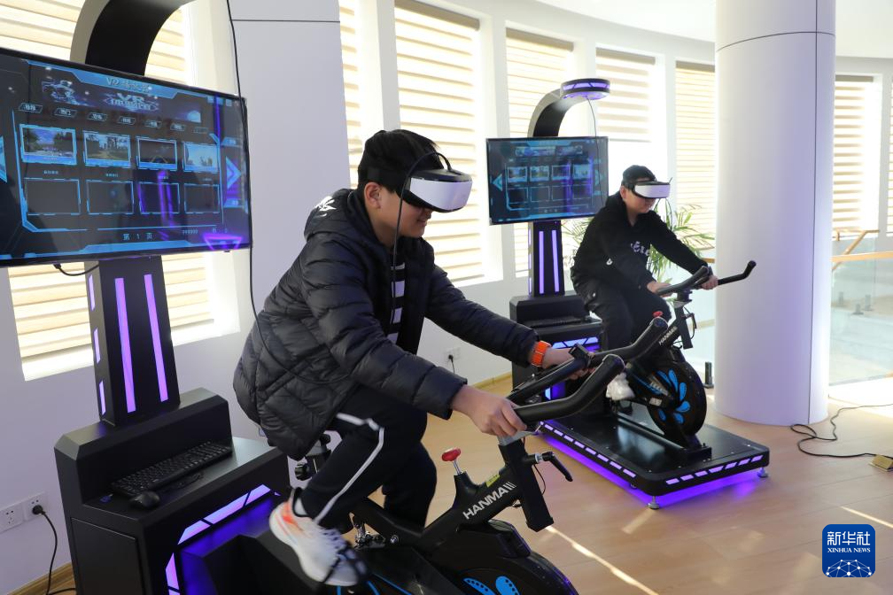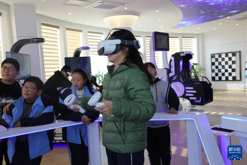 12月24日,在山东省滨州市沾化区富中社区社会心理服务中心,工作人员指导孩子们体验娱乐设施。