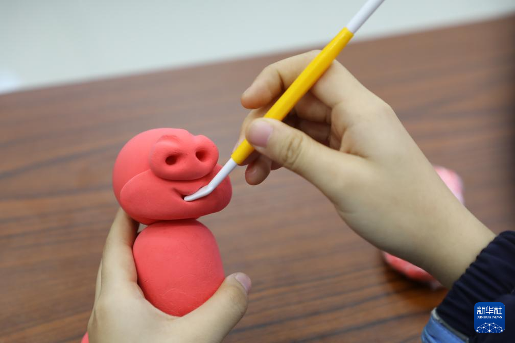 12月24日,在山东省滨州市沾化区富中社区,面塑老师指导孩子们制作面塑龙。