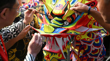 1月9日,商户在推销“巴珠”(藏族头饰)。