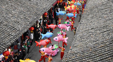 这是平安里地铁站内的中国风灯饰(1月20日摄)。