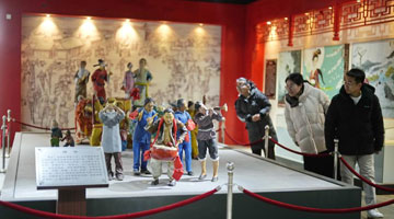 这是平安里地铁站内的中国传统皮影戏走马灯灯柱(1月20日摄)。