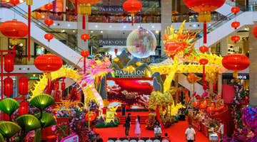 1月20日,人们在湖北省襄阳市樊城区国际商贸城挑选春节饰品。