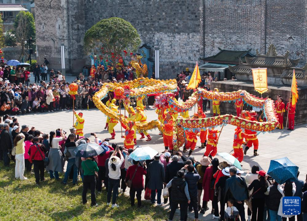 3月11日,在泸县屈氏庄园前,彩龙队进行舞龙表演。