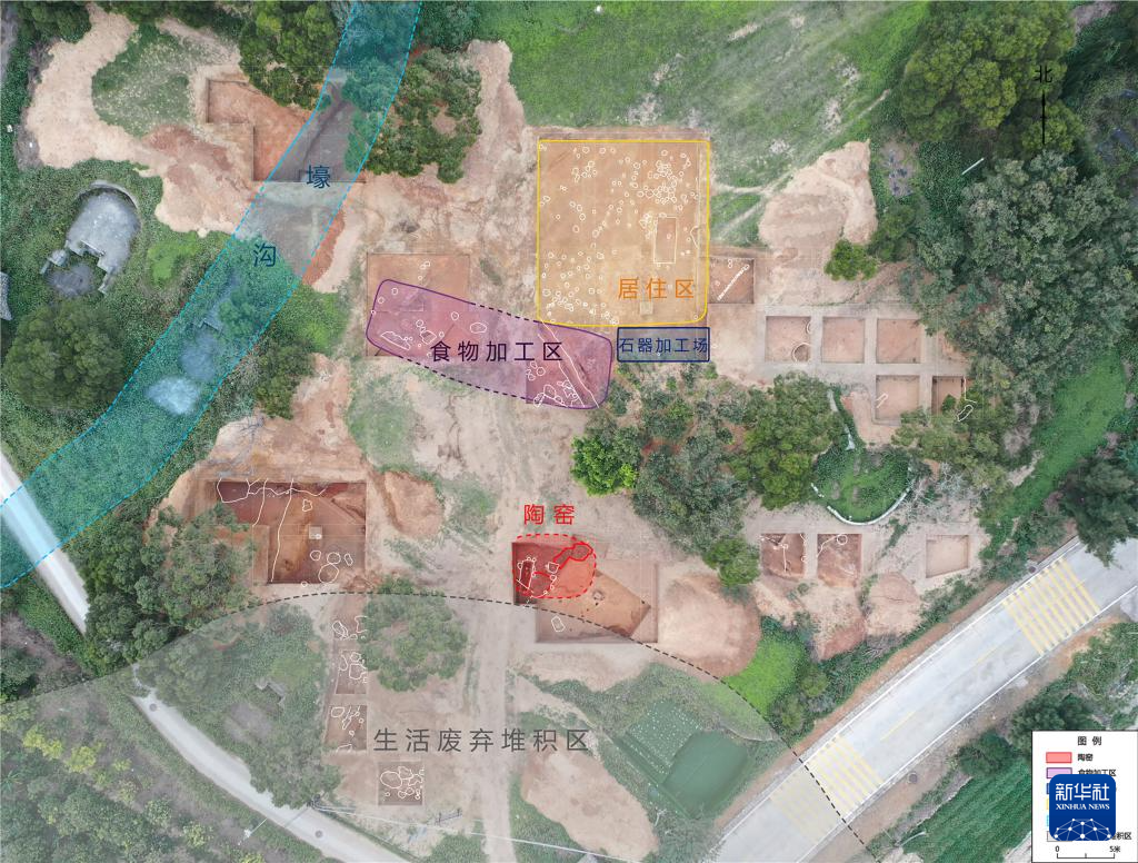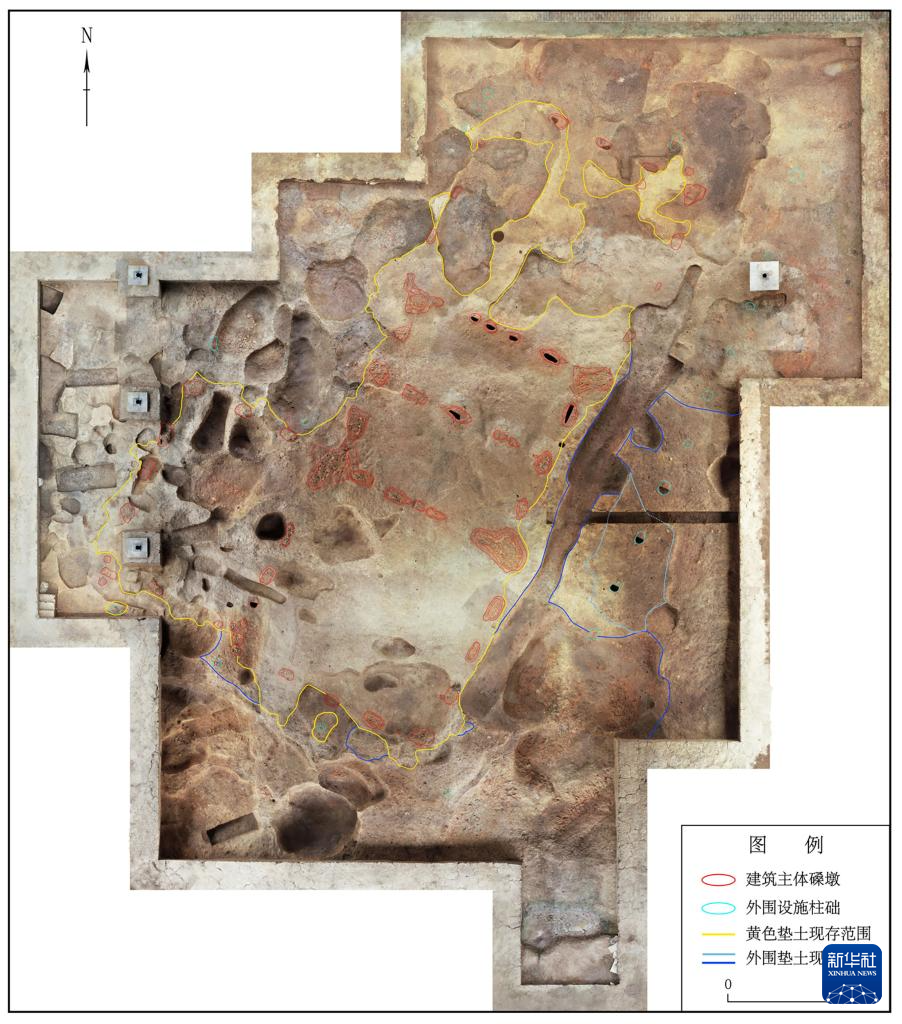湖北荆门屈家岭遗址F38房址发掘区俯视图。