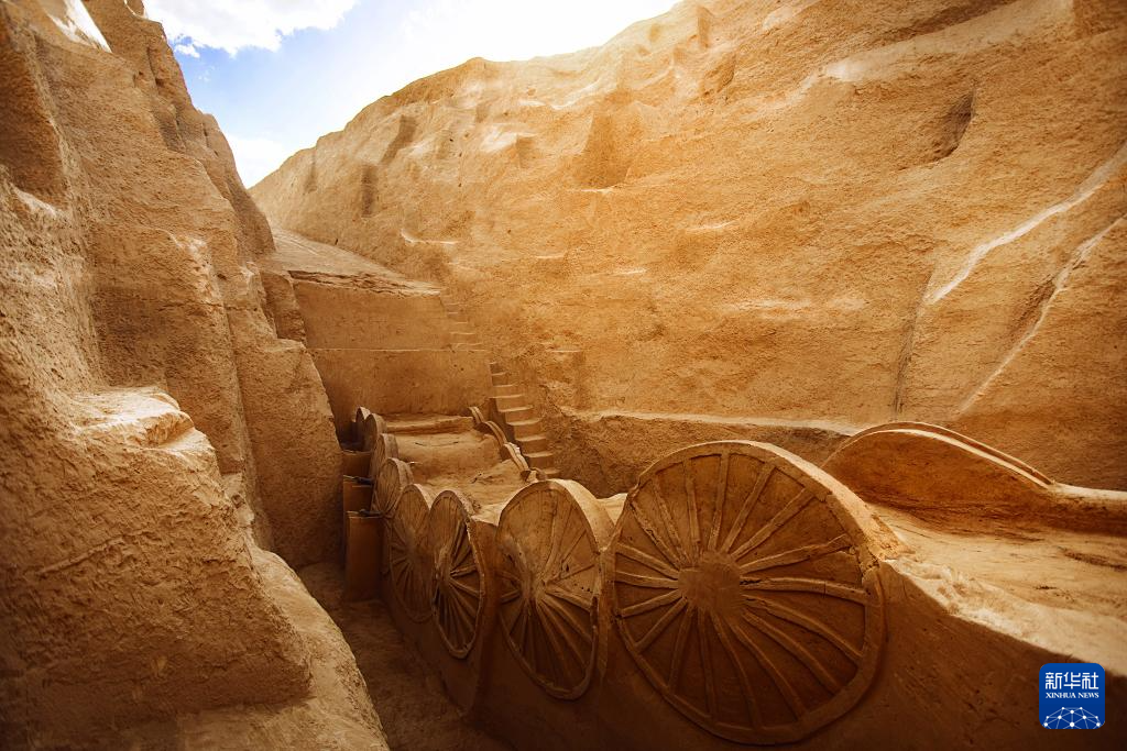 陕西清涧寨沟遗址瓦窑沟墓地出土的葬车(资料照片)。