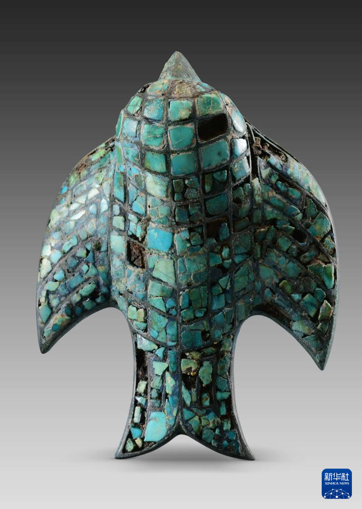 陕西清涧寨沟遗址后刘家塔墓地出土的镶绿松石铜饰(资料照片)。