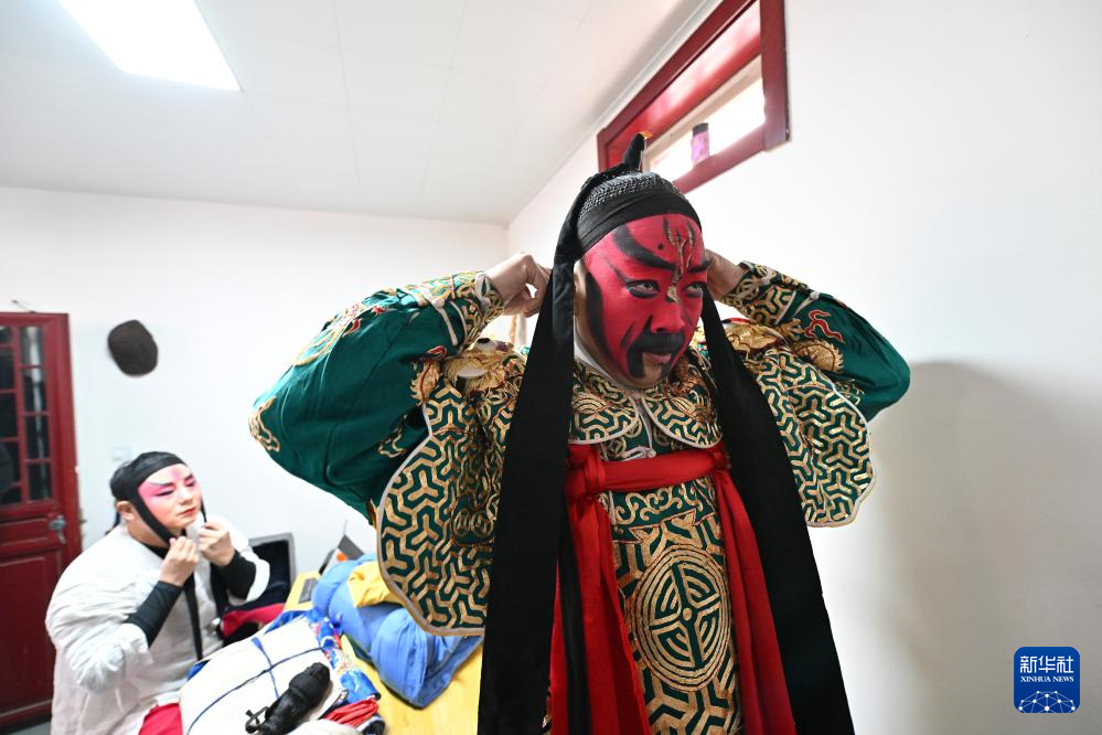 在山西省太原市迎泽区,武凌云上台演出前检查道具(2月2日摄)。