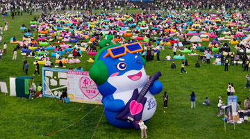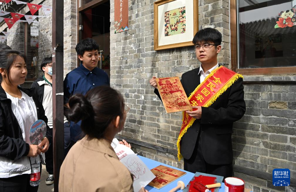 4月15日,工作人员在国家安全年画娃娃艺术展上进行介绍。