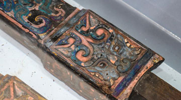 走进闫森林的工作室,不同主题、造型各异的贺兰砚陈列其中,方寸之间尽显自然和艺术之美。闫森林介绍说,贺兰石褐紫、豆绿两色相互掩映,常伴有玉带、云纹、眉子、石眼、银线等天然纹样陪衬。一方贺兰砚,要经历相石选料、设计、打砚坯、初步雕刻、精细雕刻、打磨、上光等工序,才会出现在使用者的眼前。制作时要因石制砚、顺其自然、发掘内涵,依据石头的形状、色彩,加以设计和雕刻。