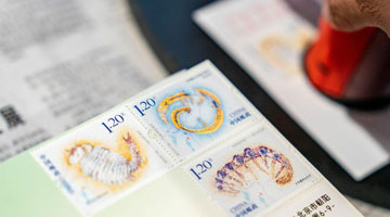闫森林在用雕刀雕刻一方砚台上的浪花纹样(3月8日摄)。