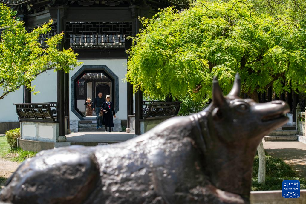 4月25日,游客在位于扬州江都区邵伯镇的斗野园内参观游玩。