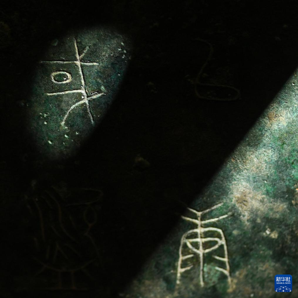 秦公镈(一号镈)铭文“或(国)”字(左上)(2024年1月23日摄)。