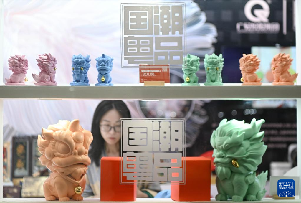 5月23日,观众在第二十届文博会“文创中国”展区观看文创产品。