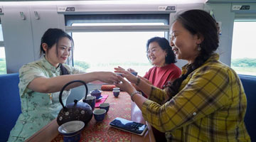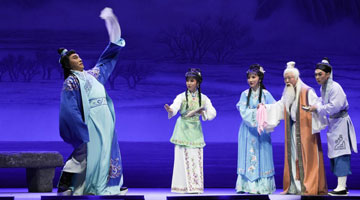 5月22日,观众向评剧《东垣大医》的演员献花。