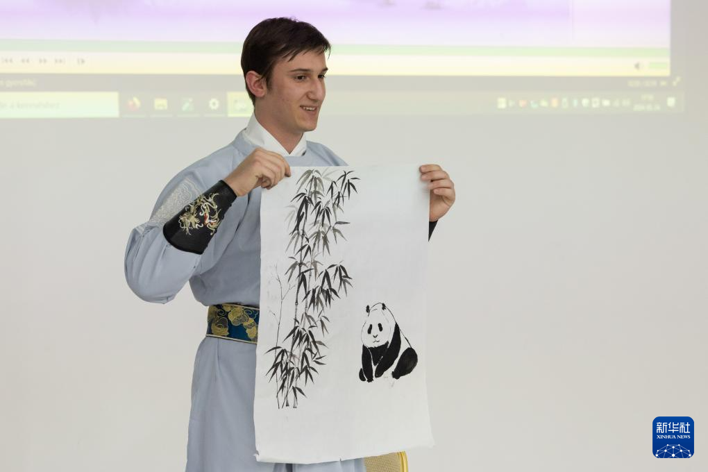 5月24日,在匈牙利佩奇大学举行的第23届“汉语桥”世界大学生中文比赛匈牙利赛区比赛上,参赛选手进行才艺展示。