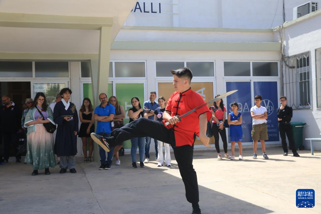 5月25日,在马耳他东部城市哈姆伦举行的第17届“汉语桥”世界中学生中文比赛暨第4届“汉语桥”世界小学生中文秀马耳他赛区比赛上,一名参赛学生表演中国武术。