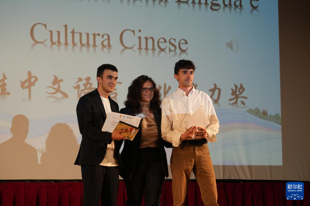 5月24日,在意大利马切拉塔大学举行的第23届“汉语桥”世界大学生中文比赛意大利暨圣马力诺赛区比赛上,教师为获奖学生颁奖。