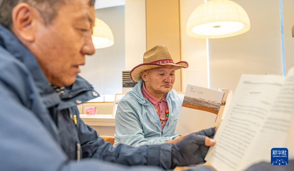 那曲市色尼区群众在“温暖嘉·色尼城市书房”内阅读藏文书籍(6月17日摄)。