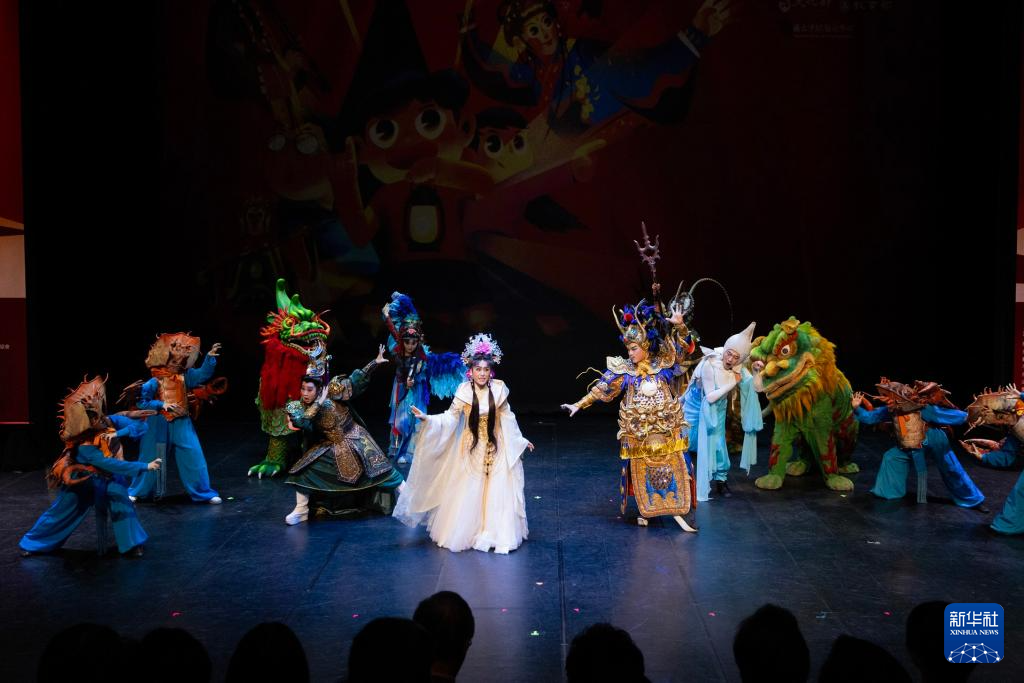 7月10日拍摄的风神宝宝儿童剧团的现场表演。新华社发