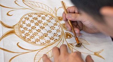 这是新疆库车市龟兹魏晋古墓遗址博物馆展出的金箔(7月15日摄)。