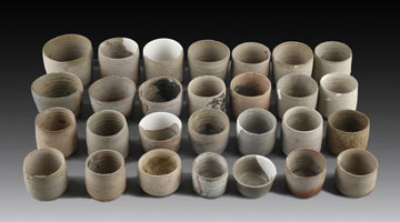 这是新疆库车市龟兹魏晋古墓遗址博物馆展出的陶器(7月15日摄)。