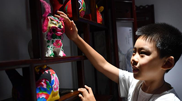 7月22日,游客借助VR设备在莫高窟第285窟虚拟场景中体验擂鼓。