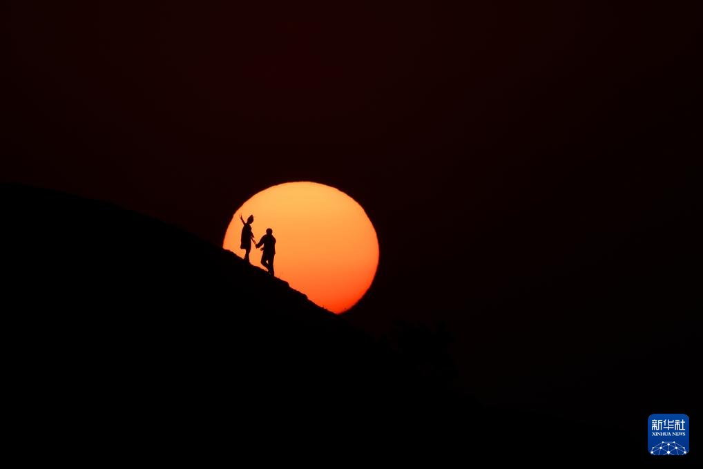 在融水苗族自治县杆洞乡尧告村高山牧场,村民在夕阳下练习吹芦笙(2021年1月18日摄)。