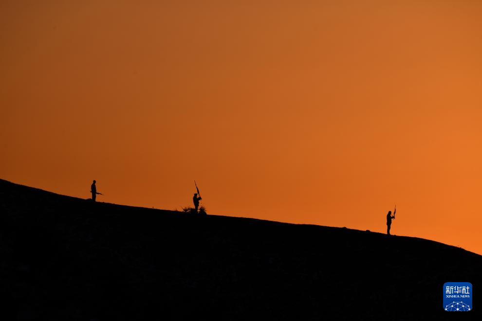 在融水苗族自治县杆洞乡尧告村,村民蒙金迷在打更巡寨(8月13日摄)。