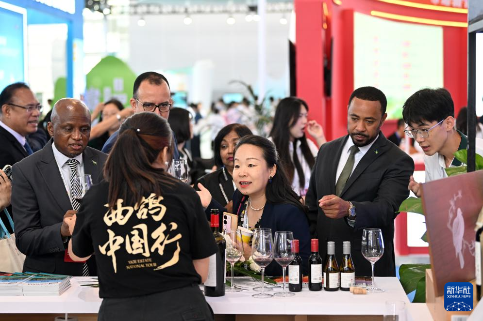9月13日,在国家会展中心(天津),与会者在宁夏展区了解当地的葡萄酒。