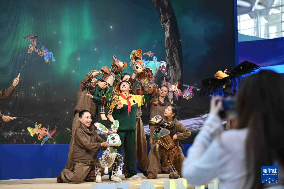 9月13日,在国家会展中心(天津),中国首部XR数字音乐儿童剧《敦煌·九色鹿王》在博览会天津河西展区表演。