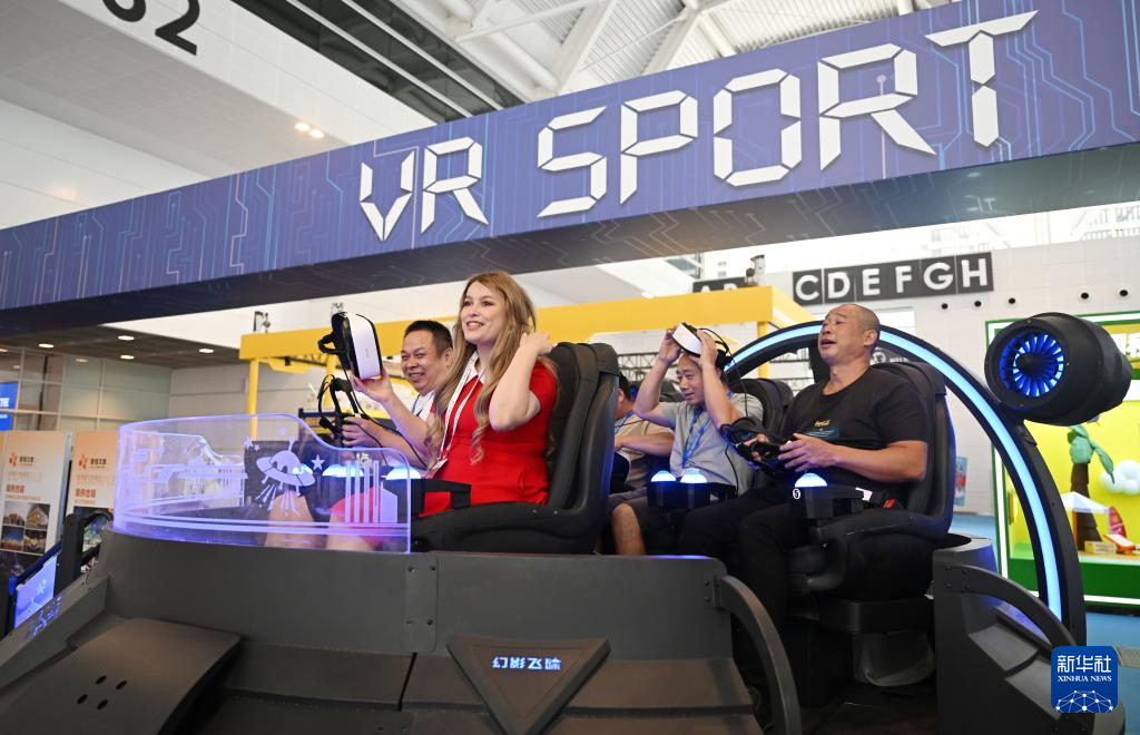9月13日,在国家会展中心(天津),与会者在博览会上体验一款VR设备。