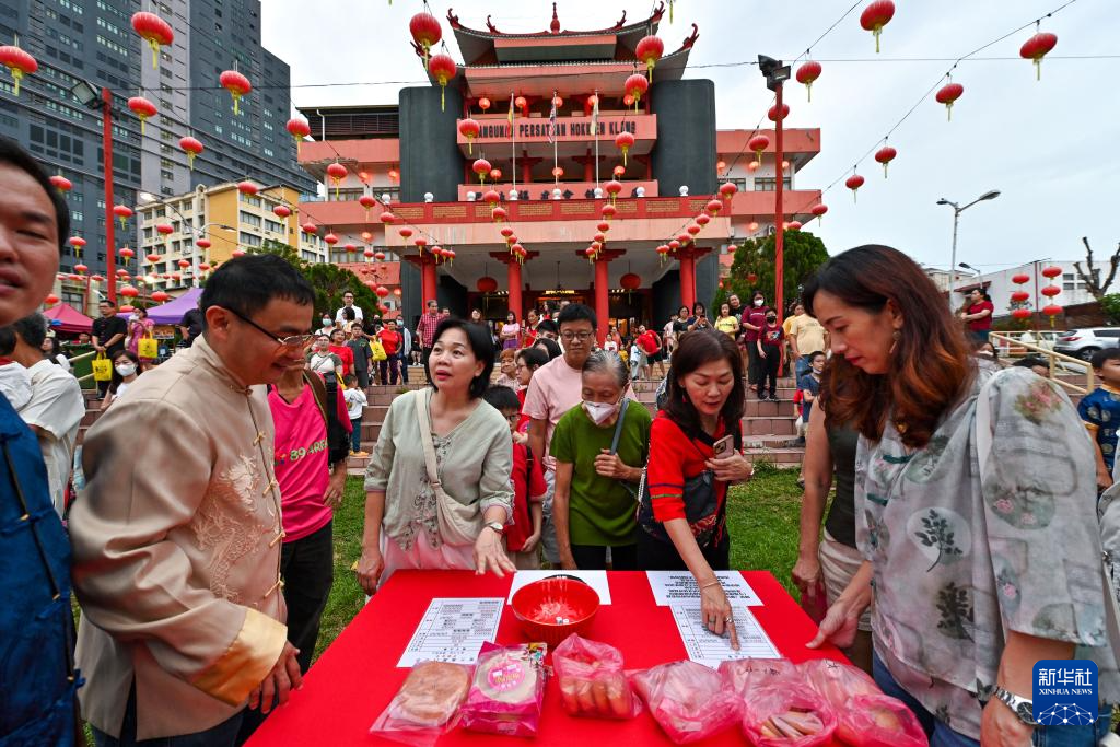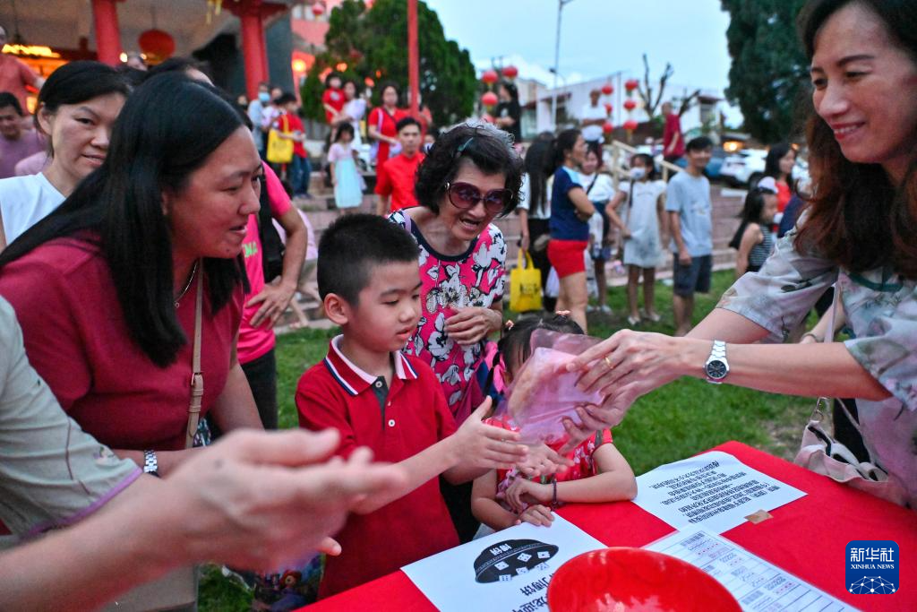 9月17日,在马来西亚雪兰莪州巴生,民众领取博饼活动奖品。