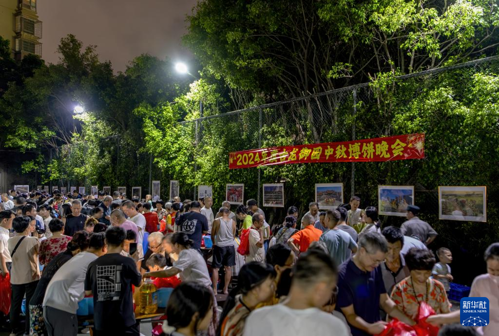 这是9月14日在福建厦门一小区拍摄的“中秋博饼晚会”现场。