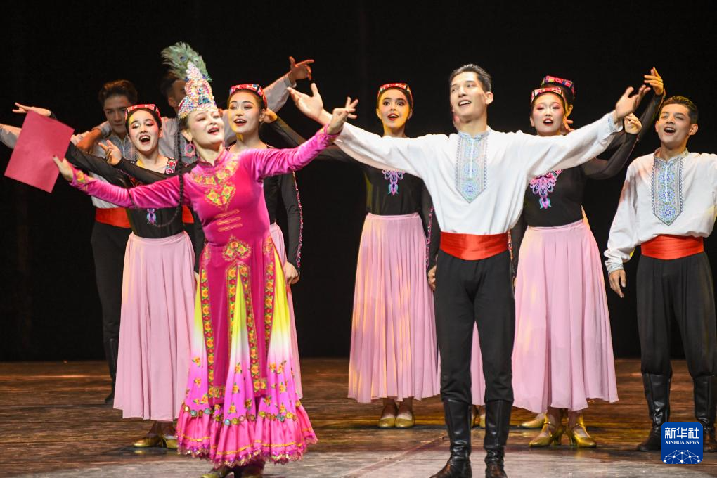 9月21日晚,新疆文化和旅游学校师生表演舞蹈《追赶太阳的姑娘》。