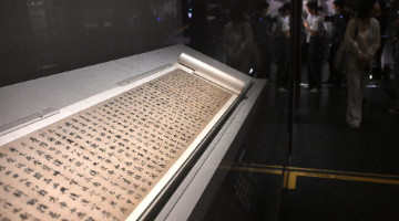 9月29日,观众在开幕式上观看展示的玉石毛料。